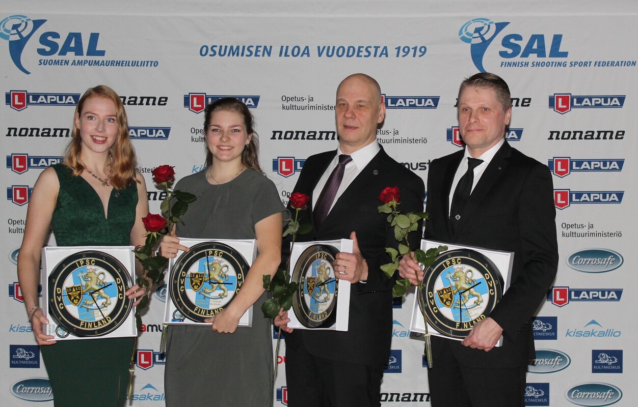 Kuva SAL Grande Finale Practical palkittavat vasemmalta Jenny Koskimäki, Nastja Mustonen (PorkkA), Mikko Kuisma ja Sami Hautamäki